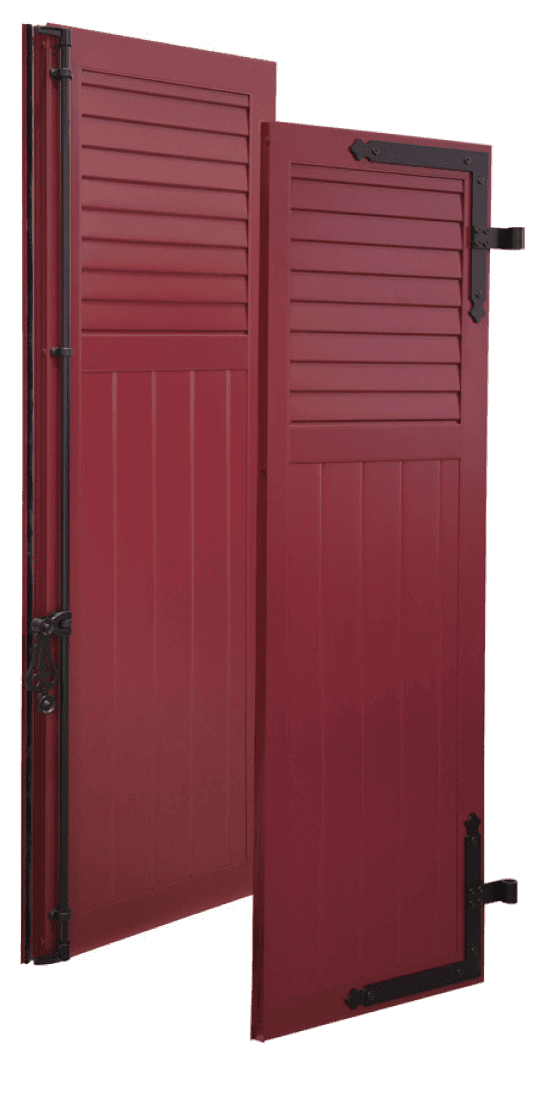 Un modèle de volet persienné, appelé volet persienné mixte, combine à la fois des lames et une partie pleine.